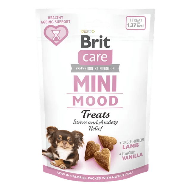 Les mini friandises pour chiens Brit Care Mood sont des collations fonctionnelles semi-humides pour chiens de petite et petite race (jusqu’à 10 kg), à base d’agneau et d’ingrédients qui aident à soulager le stress et l’anxiété.