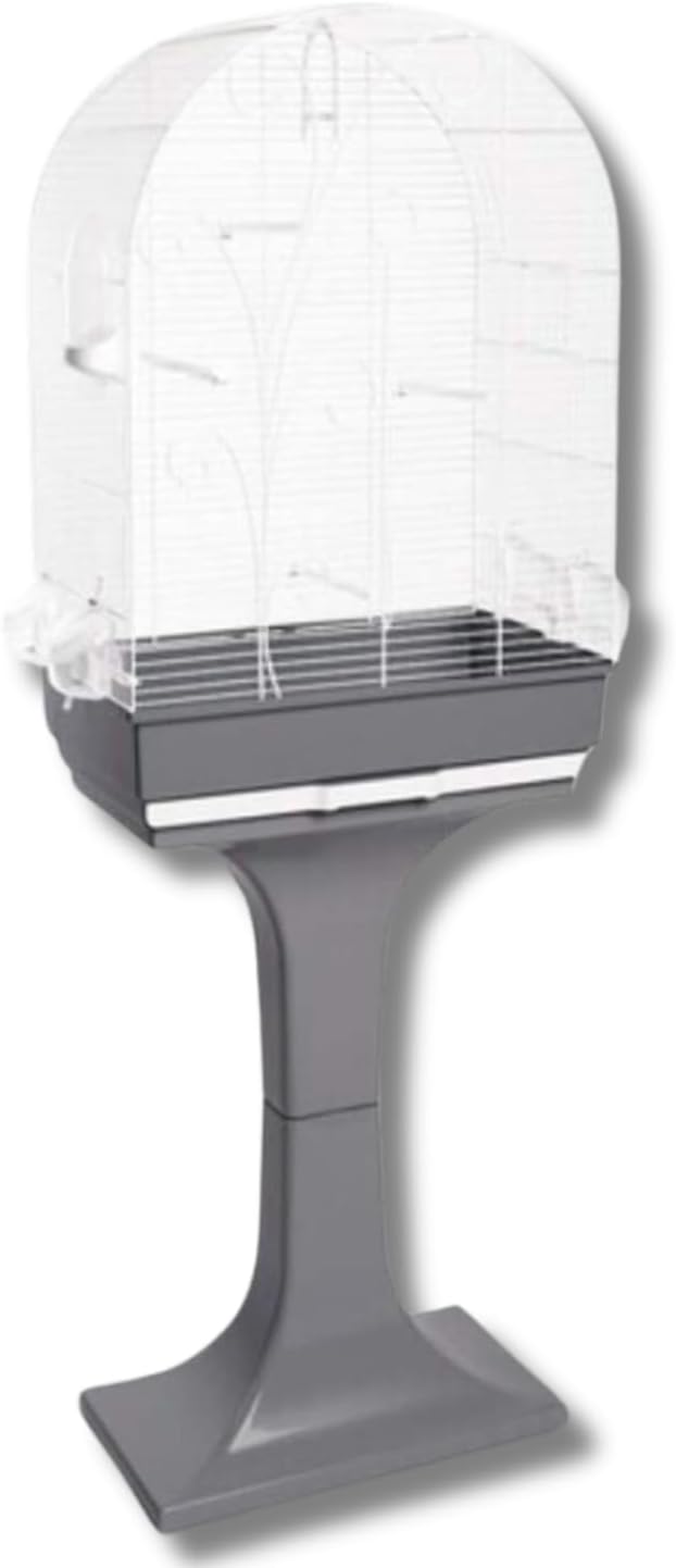 4 perchoirs, 4 mangeoires, 1 bouteille d’eau, 1 plateau en plastique amovible, 1 support sur piédestal en plastique.
