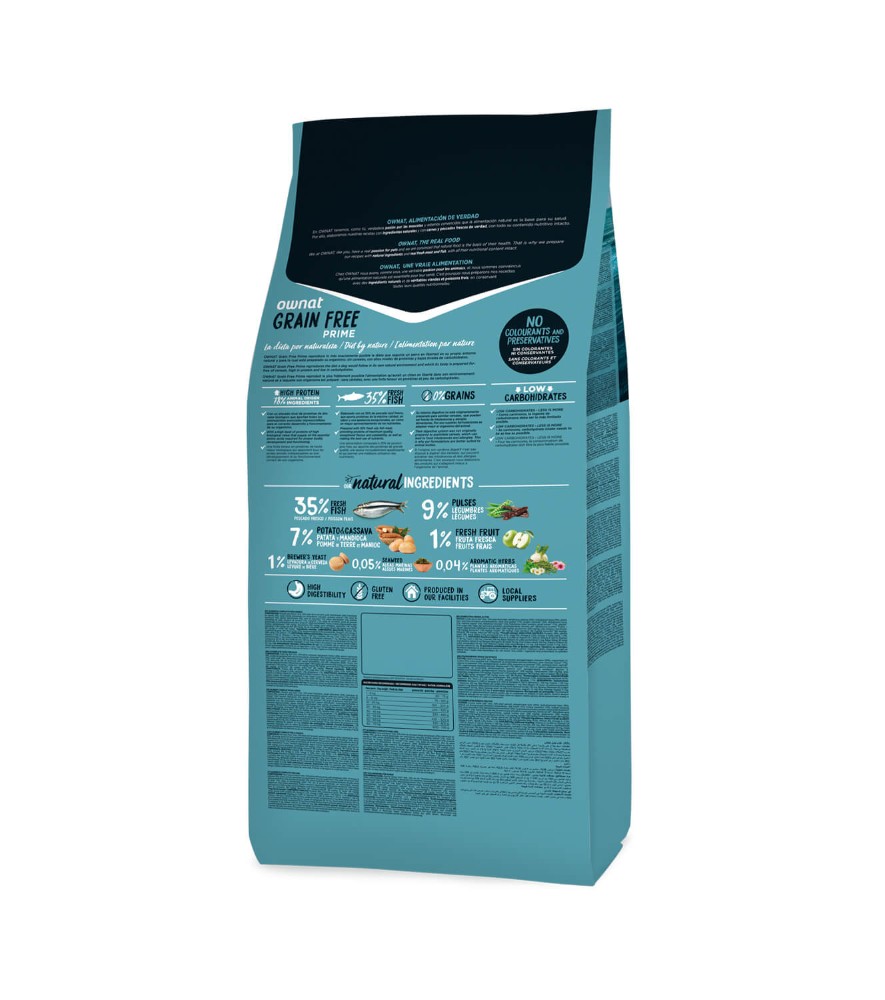 Yucca schidigeraPoisson gras frais* (min. 35% avant l’extrusion), poulet déshydraté (20%), hydrolysat de saumon (9%), graisse de volaille (préservée avec des antioxydants naturels), petits pois entiers* (7%), racines de manioc* (5%), saumon déshydraté (4%), gousse de caroube* (2%), pomme de terre déshydratée* (2%), protéines de poulet hydrolysées, levure de bière* (1%), pomme* (1%), pulpe de betterave, huile de saumon (préservée avec des antioxydants naturels), sel gemme*, luzerne déshydratée*, fructo-oligosaccharides et mannane-oligosaccharides, algues marines déshydratées* (500 mg/kg), glucosamine (500 mg/kg), yucca schidigera, chondroïtine sulfate (100 mg/kg), airelles* (100 mg/kg), thym* (80 mg/kg), fleur de camomille* (80 mg/kg), fenouil* (80 mg/kg), échinacée* (80 mg/kg), thé vert* (80 mg/kg). *INGRÉDIENTS NATURELS