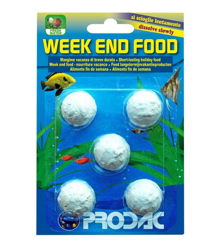 Aliment composé à inclure dans l’aquarium lors d’absences prolongées ; il se dissout lentement dans l’eau et nourrit de manière équilibrée tous les types de poissons tropicaux d’eau douce.