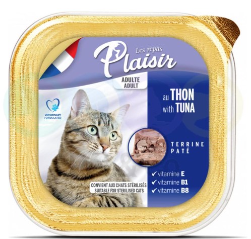 Les pâtés Les Repas Plaisir au Thon sont parfaites pour les chats qui adorent le poisson. De plus, leur texture fondante contient des morceaux et est très appétente. Nos patés sont des repas complets sans colorants et sans céréales ajoutées.