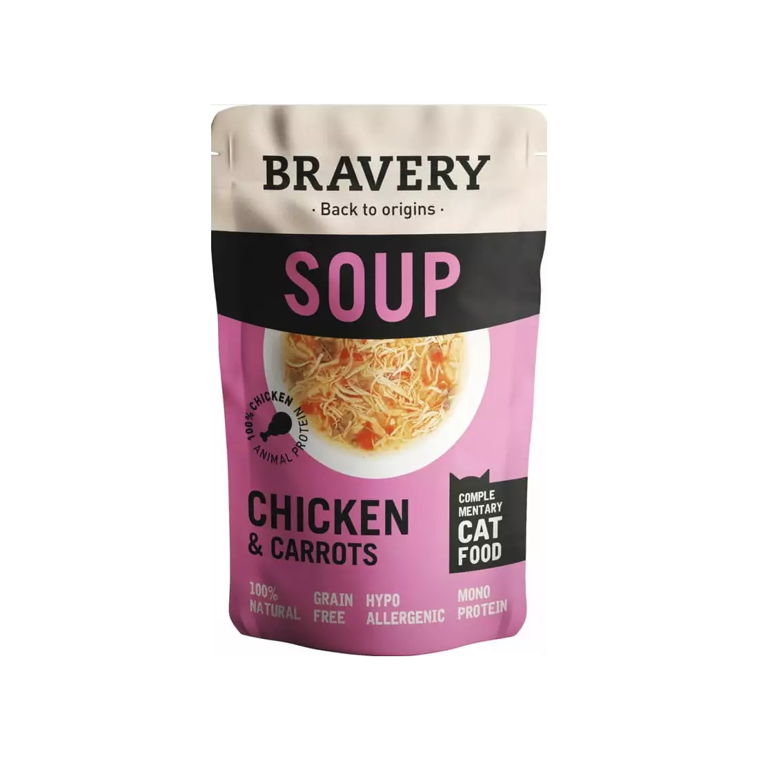 Soupe pour chat, Soupes Bravery, poulet et carotte 40g
